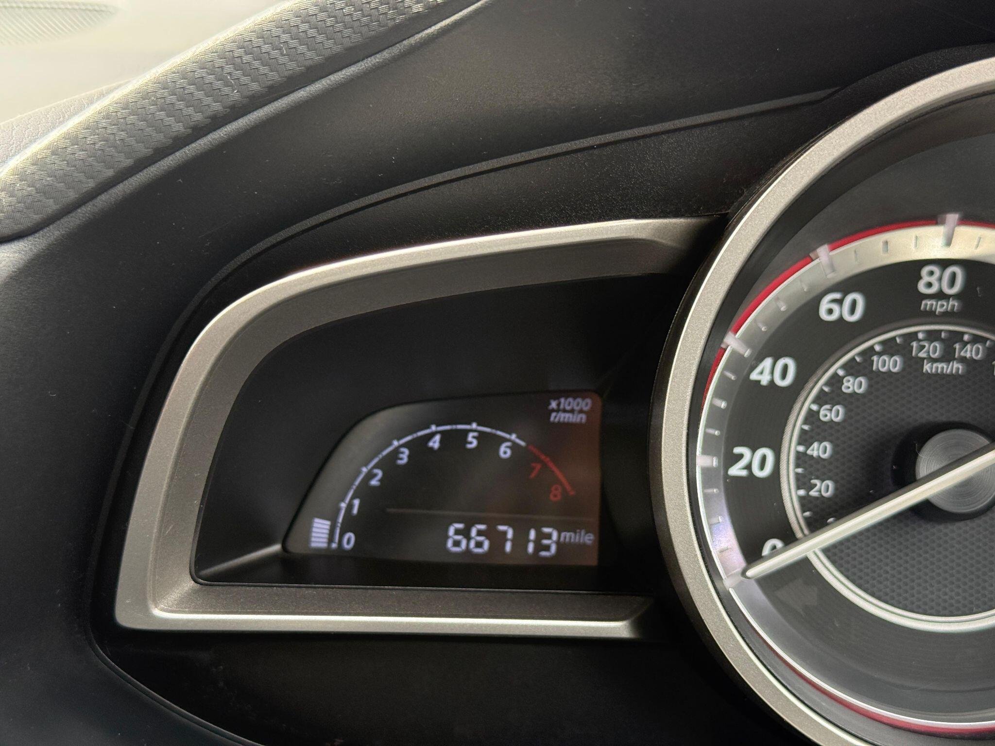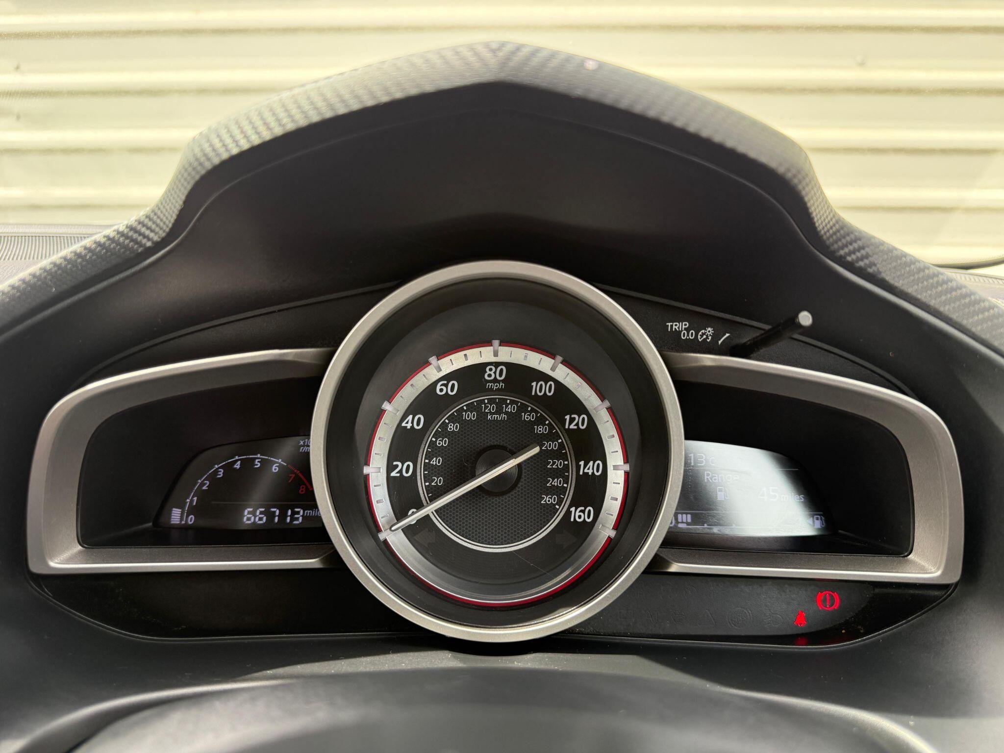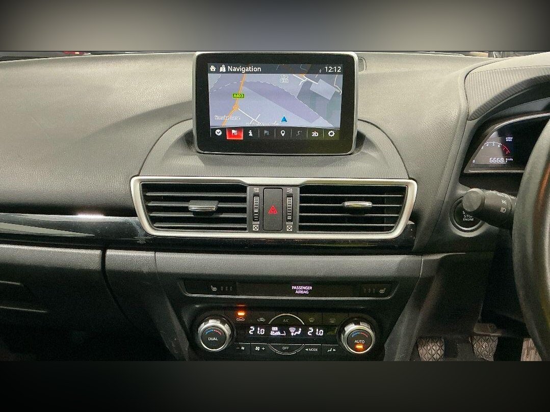This 2015 Mazda3 SKYACTIV-G SE-L Nav offers exceptional value with its remarkably low mileage of just 66,000 miles for its age. This well appointed Mazda3 features a responsive 2.0 litre petrol engine and comes equipped with dual zone climate control for personalised comfort, dusk sensing automatic headlights for convenience, and a combined Bluetooth system for seamless phone and audio streaming. You'll also benefit from Bi-Xenon headlights for superior visibility and rear parking sensors to assist with manoeuvring.