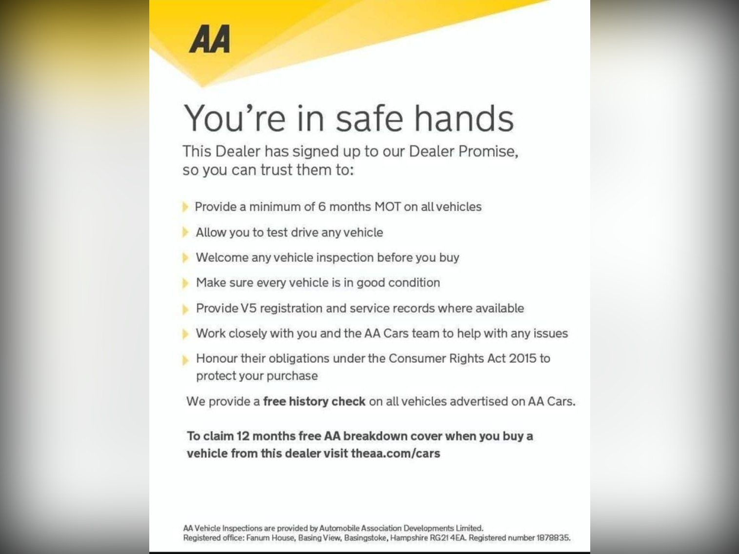 To add to your peace of mind, we offer a 3-month warranty, 12 months of AA Breakdown Cover, and a minimum 6 months of both MOT and service. Your satisfaction and the longevity of your investment are our top priorities.