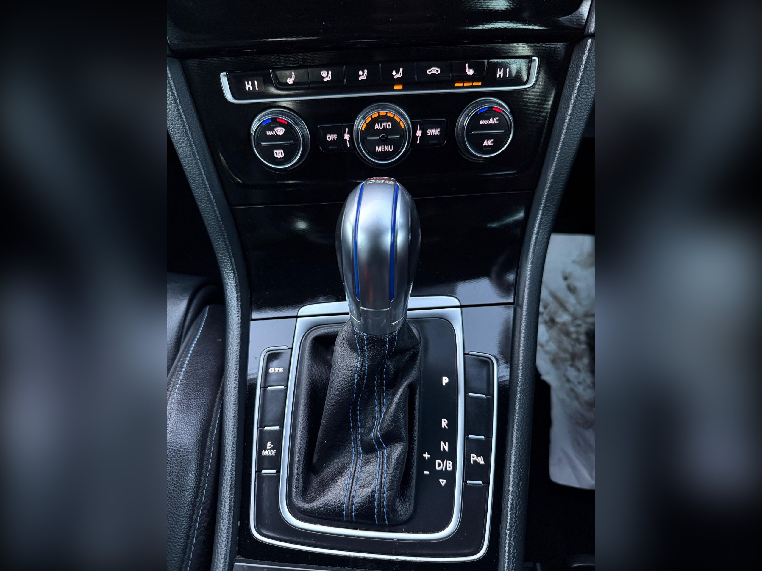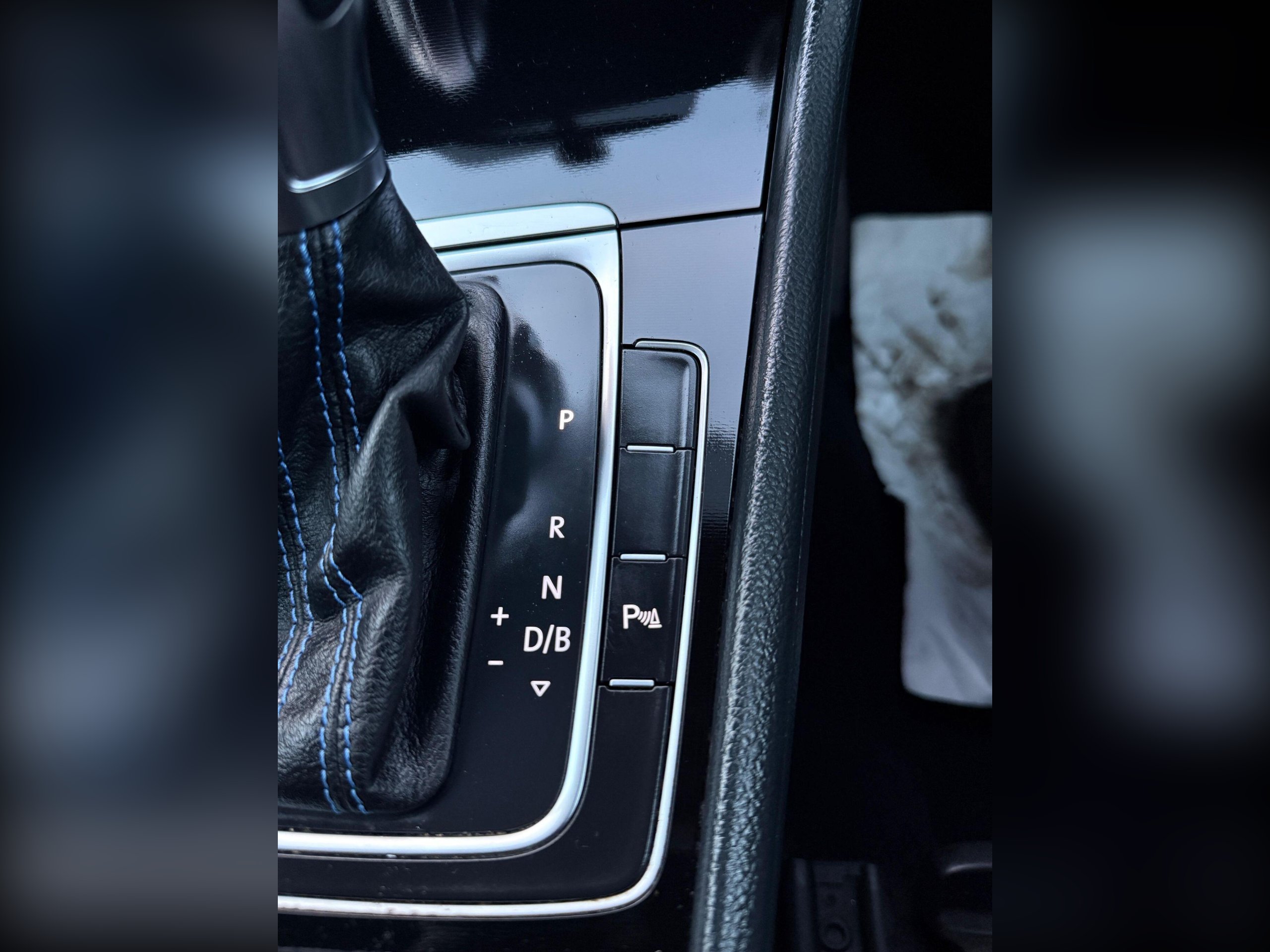 - Leather Trimmed Gear Knob with Aluminium Look Trim with Blue Stitching